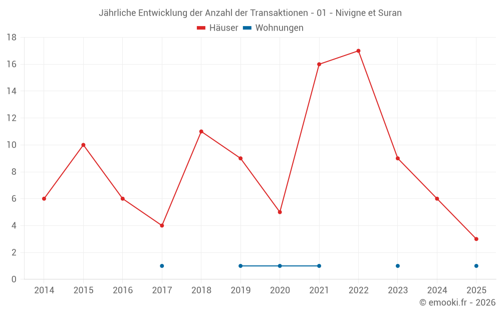 Der Durchschnittspreis auf den 15 Hausgeschäften der letzten 24 Monate in der Gemeinde Nivigne et Suran betrug 1 645 € pro Quadratmeter für einen mittleren Immobilienwert von 137 000 €. Über diesen Zeitraum hinweg lagen 60% der Transaktionen zwischen 853 und 2 135 € pro Quadratmeter (vom 2. bis zum 8. Dezil).