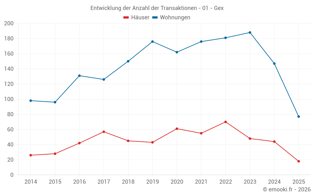 Karte der Immobilienpreise in der Gemeinde Gex, wählen Sie einen Abschnitt, um Transaktionen nach Parzelle zu sehen.