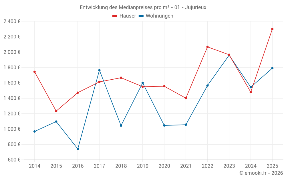 Karte der Immobilienpreise in der Gemeinde Jujurieux, wählen Sie einen Abschnitt, um Transaktionen nach Parzelle zu sehen.
