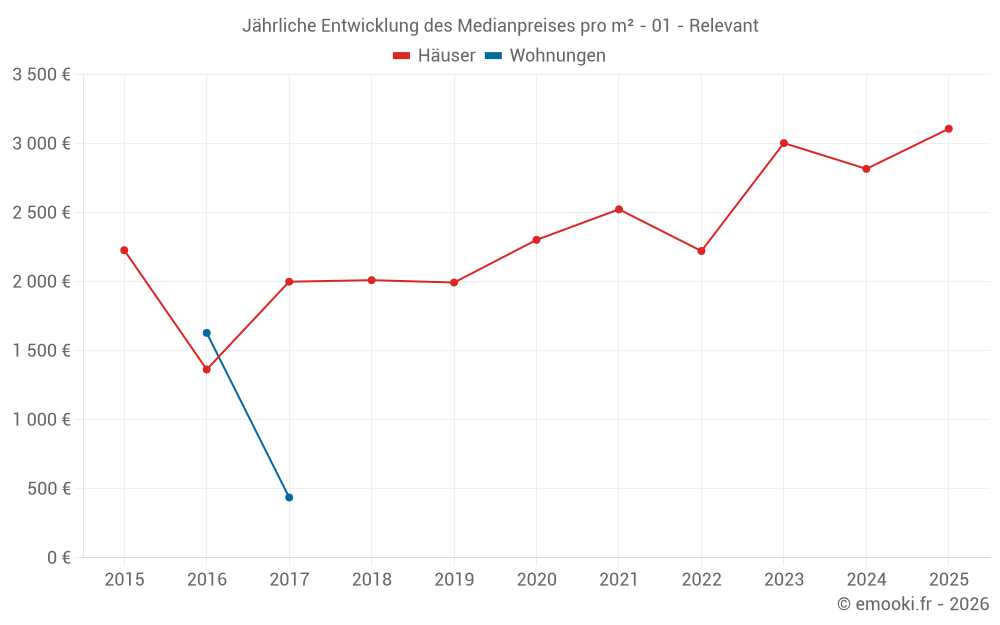 Entwicklung des Medianpreises pro m² von Häusern