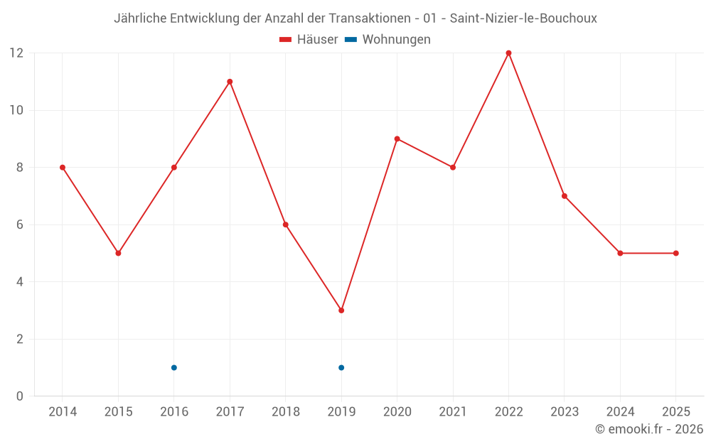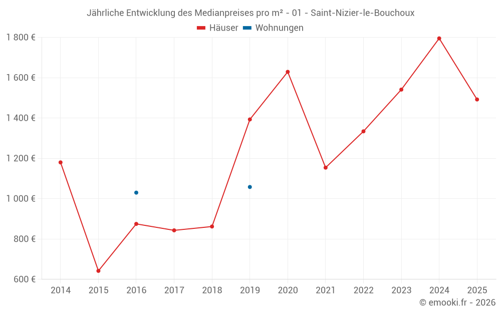 Der Durchschnittspreis auf den 15 Hausgeschäften der letzten 24 Monate in der Gemeinde Saint-Nizier-le-Bouchoux betrug 1 565 € pro Quadratmeter für einen mittleren Immobilienwert von 170 000 €. Über diesen Zeitraum hinweg lagen 60% der Transaktionen zwischen 959 und 1 958 € pro Quadratmeter (vom 2. bis zum 8. Dezil).