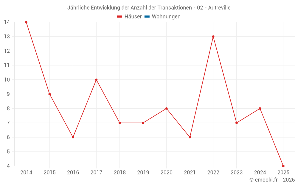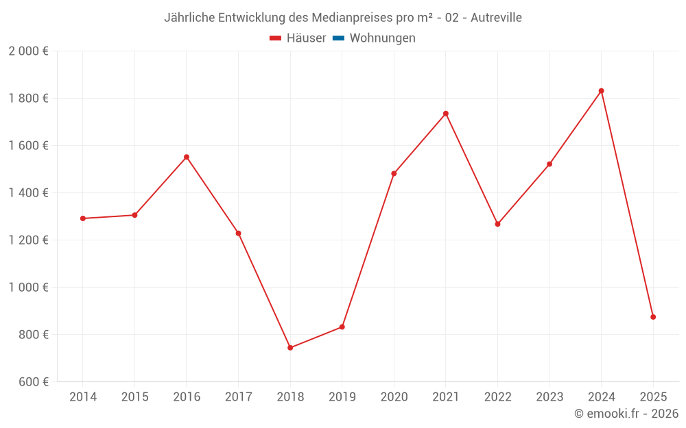 Der Durchschnittspreis auf den 17 Hausgeschäften der letzten 24 Monate in der Gemeinde Autreville betrug 1 527 € pro Quadratmeter für einen mittleren Immobilienwert von 142 000 €. Über diesen Zeitraum hinweg lagen 60% der Transaktionen zwischen 916 und 1 895 € pro Quadratmeter (vom 2. bis zum 8. Dezil).