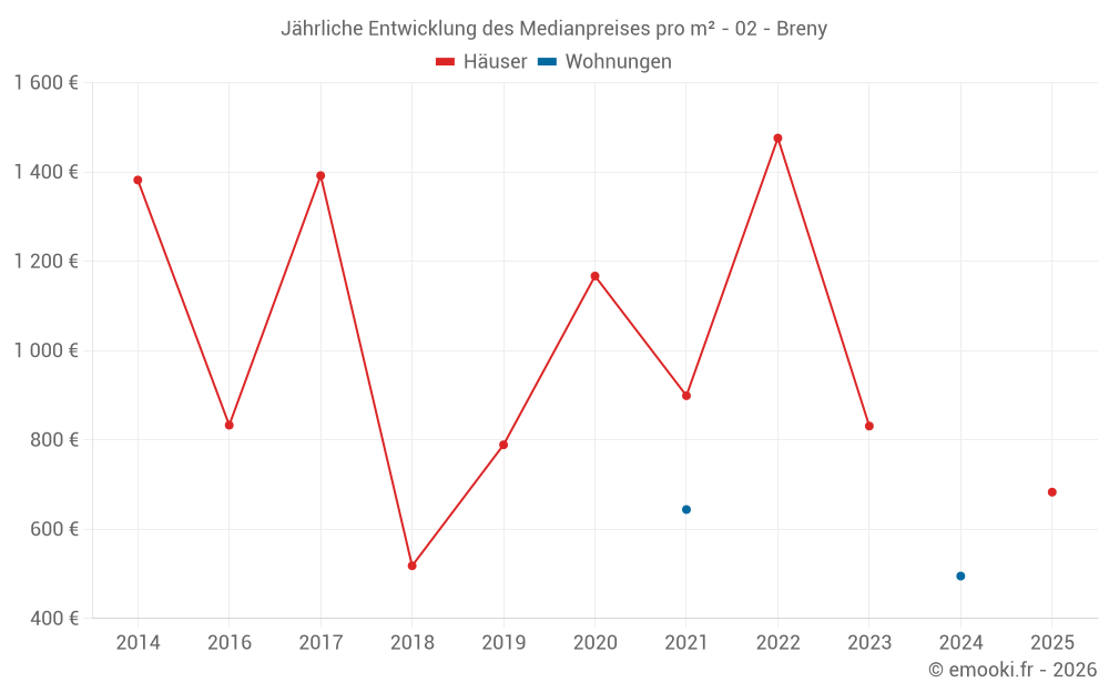 Karte der Immobilienpreise in der Gemeinde Breny, wählen Sie einen Abschnitt, um Transaktionen nach Parzelle zu sehen.