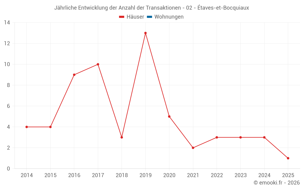 Karte der Immobilienpreise in der Gemeinde Étaves-et-Bocquiaux, wählen Sie einen Abschnitt, um Transaktionen nach Parzelle zu sehen.
