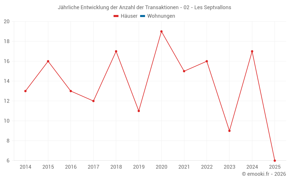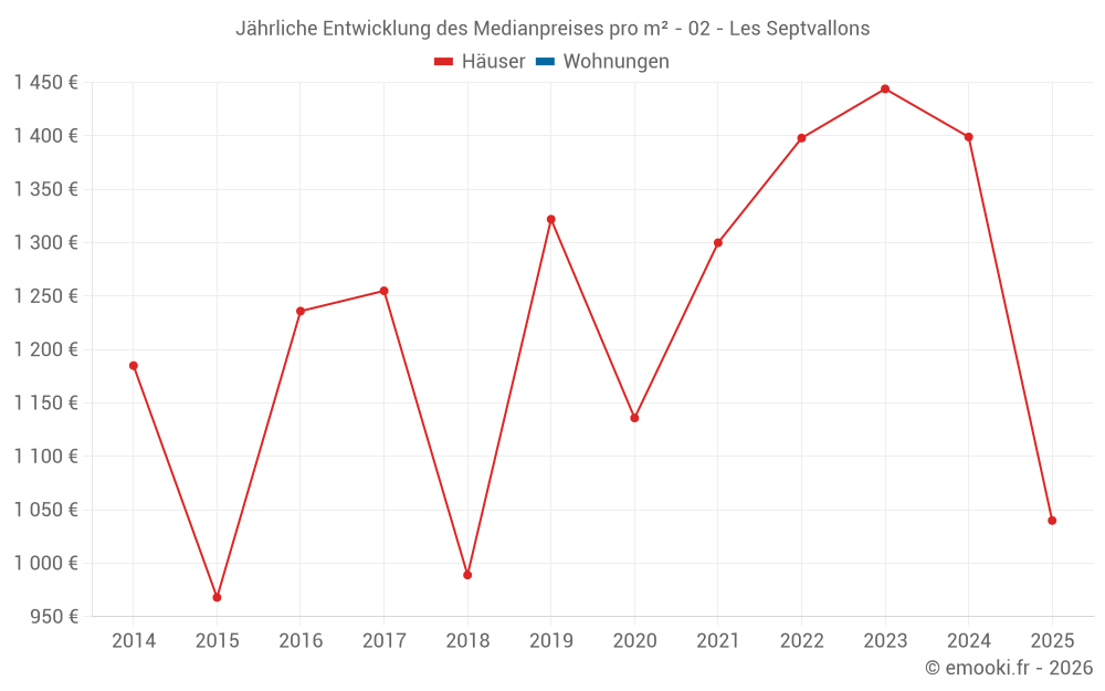 Der Durchschnittspreis auf den 20 Hausgeschäften der letzten 12 Monate in der Gemeinde Les Septvallons betrug 1 405 € pro Quadratmeter für einen mittleren Immobilienwert von 150 250 €. Über diesen Zeitraum hinweg lagen 60% der Transaktionen zwischen 960 und 2 034 € pro Quadratmeter (vom 2. bis zum 8. Dezil).