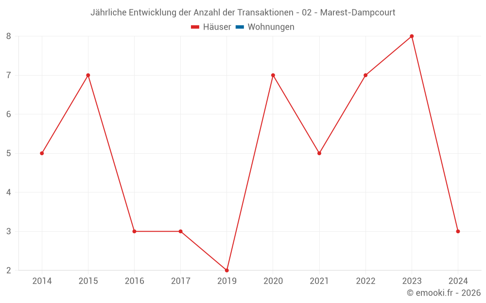 Karte der Immobilienpreise in der Gemeinde Marest-Dampcourt, wählen Sie einen Abschnitt, um Transaktionen nach Parzelle zu sehen.