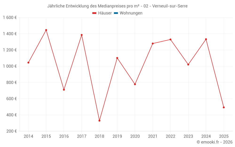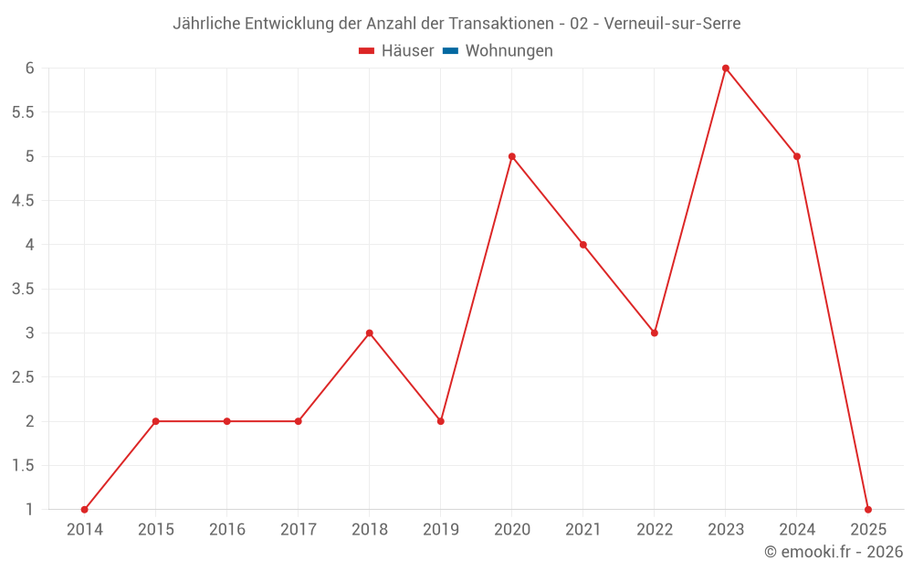 Karte der Immobilienpreise in der Gemeinde Verneuil-sur-Serre, wählen Sie einen Abschnitt, um Transaktionen nach Parzelle zu sehen.
