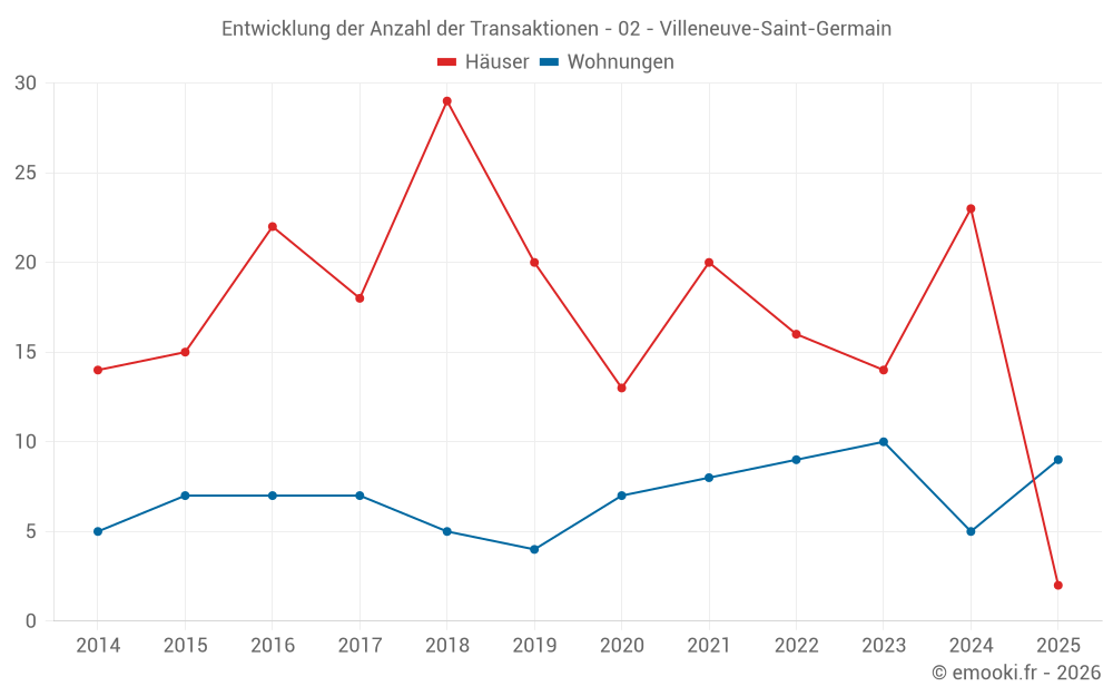 Karte der Immobilienpreise in der Gemeinde Villeneuve-Saint-Germain, wählen Sie einen Abschnitt, um Transaktionen nach Parzelle zu sehen.