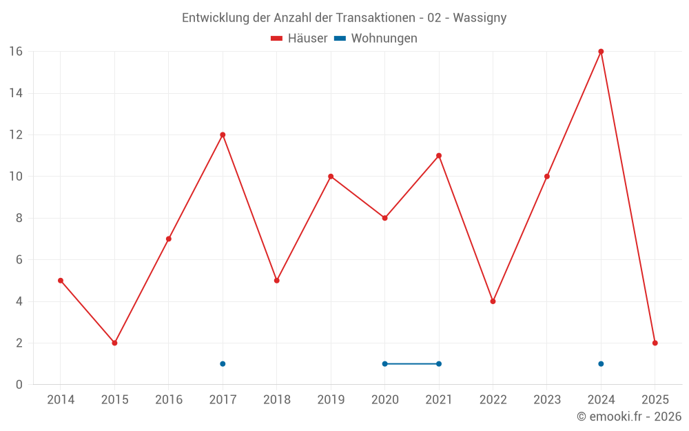 Karte der Immobilienpreise in der Gemeinde Wassigny, wählen Sie einen Abschnitt, um Transaktionen nach Parzelle zu sehen.