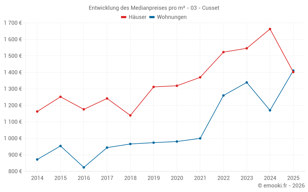 Karte der Immobilienpreise in der Gemeinde Cusset, wählen Sie einen Abschnitt, um Transaktionen nach Parzelle zu sehen.