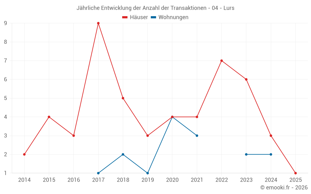 Karte der Immobilienpreise in der Gemeinde Lurs, wählen Sie einen Abschnitt, um Transaktionen nach Parzelle zu sehen.