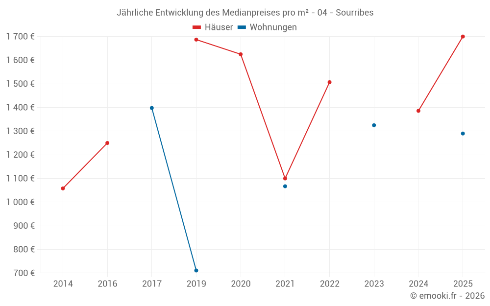 Karte der Immobilienpreise in der Gemeinde Sourribes, wählen Sie einen Abschnitt, um Transaktionen nach Parzelle zu sehen.