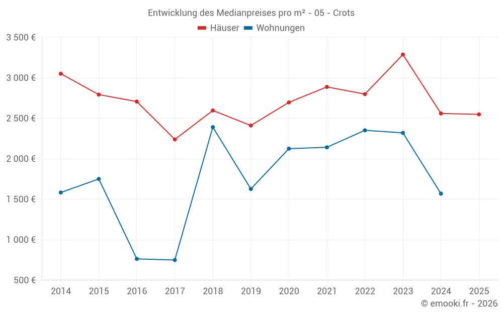 Karte der Immobilienpreise in der Gemeinde Crots, wählen Sie einen Abschnitt, um Transaktionen nach Parzelle zu sehen.