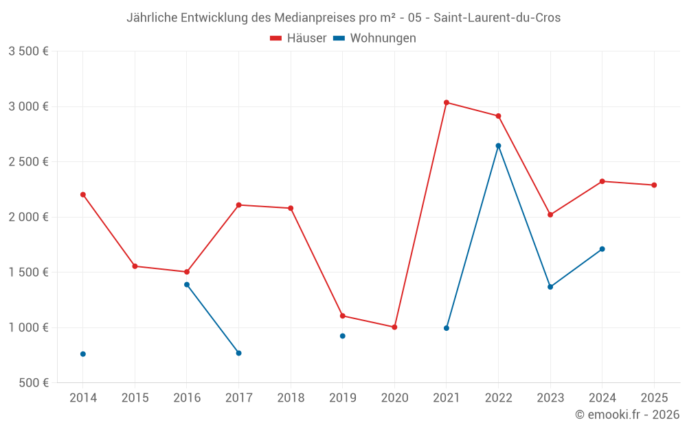 Entwicklung des Medianpreises pro m² von Wohnungen
