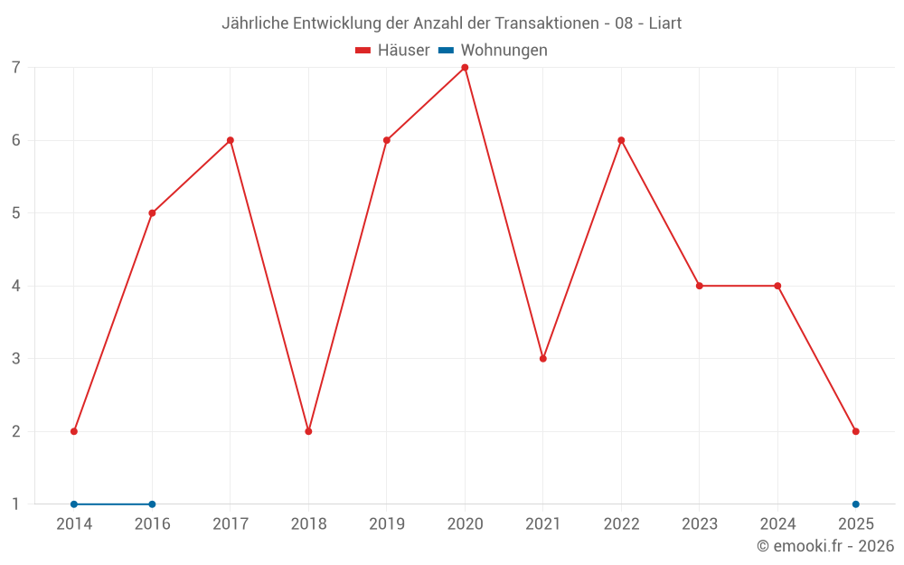 Karte der Immobilienpreise in der Gemeinde Liart, wählen Sie einen Abschnitt, um Transaktionen nach Parzelle zu sehen.