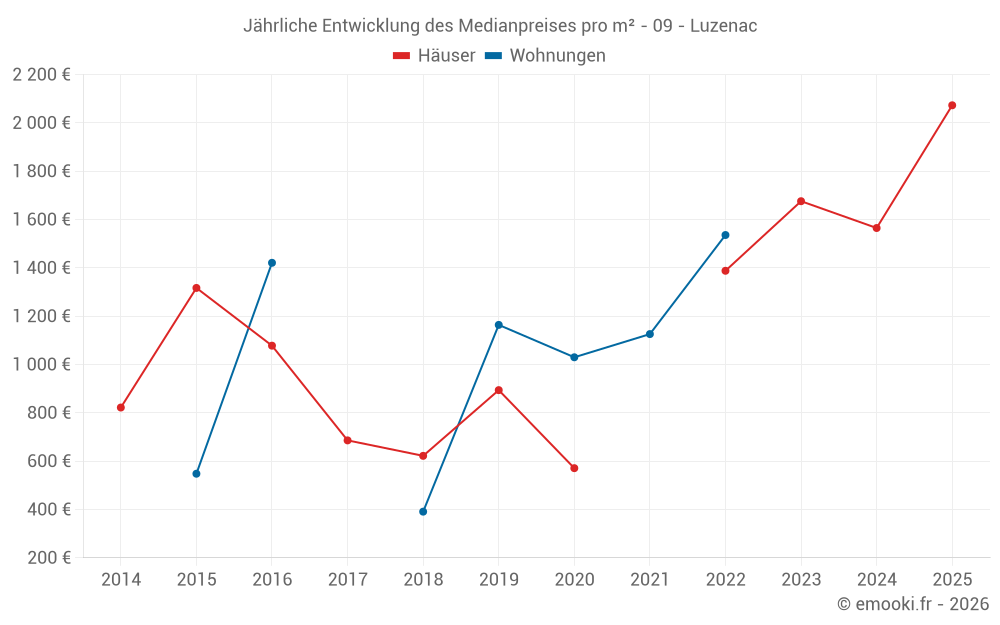 Entwicklung des Medianpreises pro m² von Wohnungen