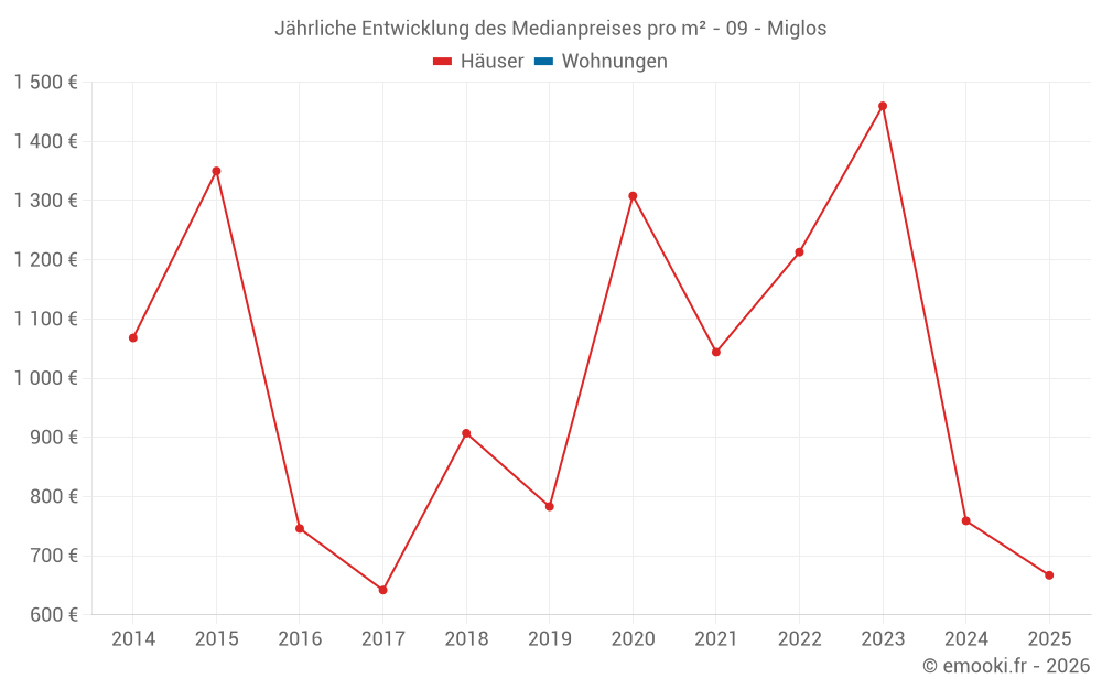Entwicklung des Medianpreises pro m² von Häusern