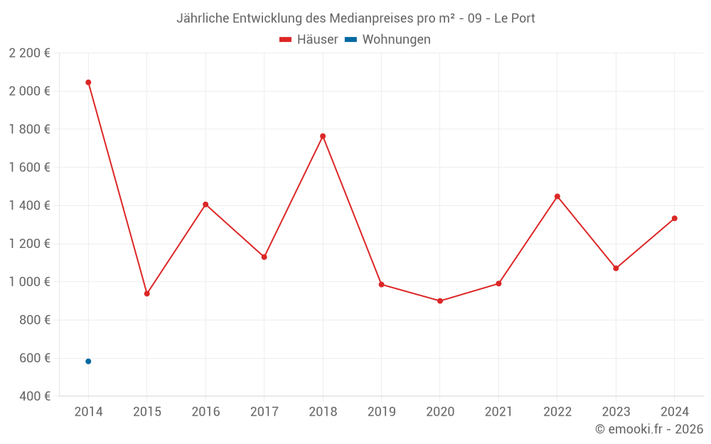 Der Durchschnittspreis auf den 20 Hausgeschäften der letzten 24 Monate in der Gemeinde Le Port betrug 1 469 € pro Quadratmeter für einen mittleren Immobilienwert von 70 730 €. Über diesen Zeitraum hinweg lagen 60% der Transaktionen zwischen 457 und 1 941 € pro Quadratmeter (vom 2. bis zum 8. Dezil).