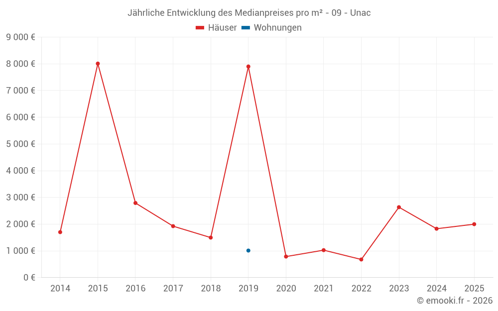 Karte der Immobilienpreise in der Gemeinde Unac, wählen Sie einen Abschnitt, um Transaktionen nach Parzelle zu sehen.