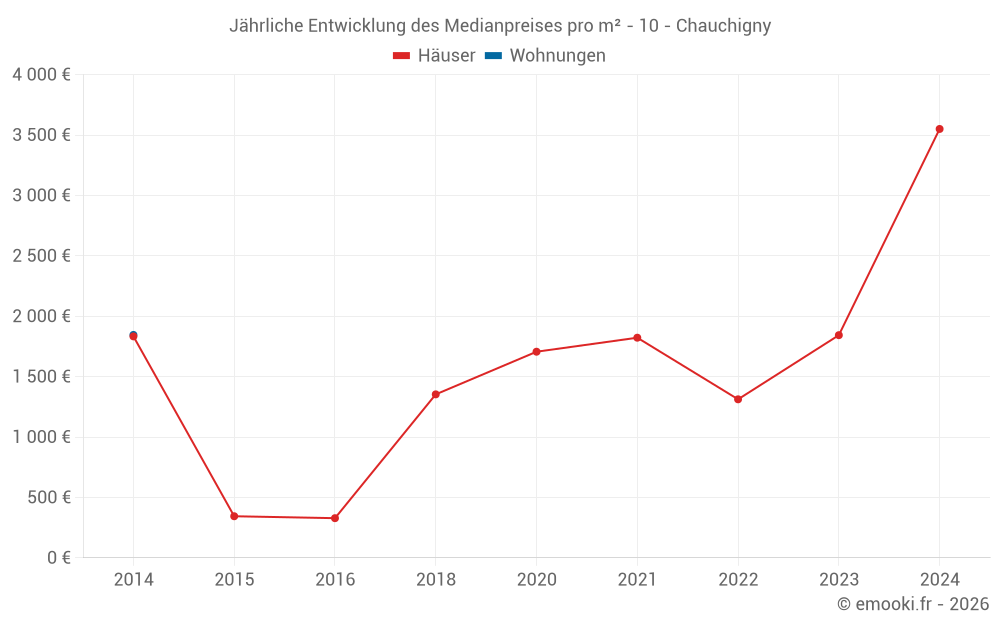 Entwicklung des Medianpreises pro m² von Häusern