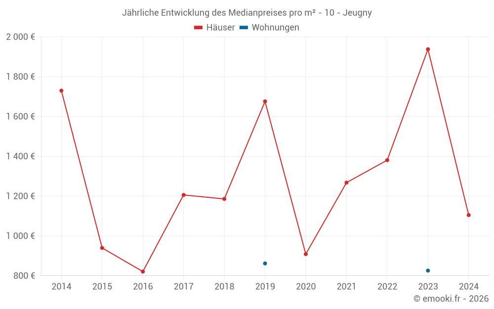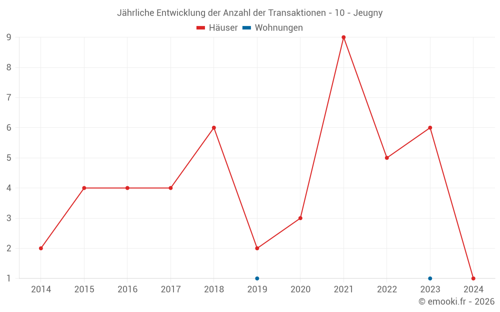 Karte der Immobilienpreise in der Gemeinde Jeugny, wählen Sie einen Abschnitt, um Transaktionen nach Parzelle zu sehen.