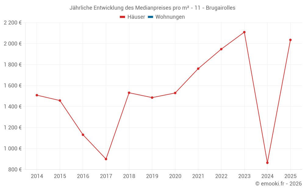 Der Preis pro m² von Häusern ist seit 1 Jahr um 135% gestiegen, aber er ist in 2 Jahren um 3.5% gesunken.