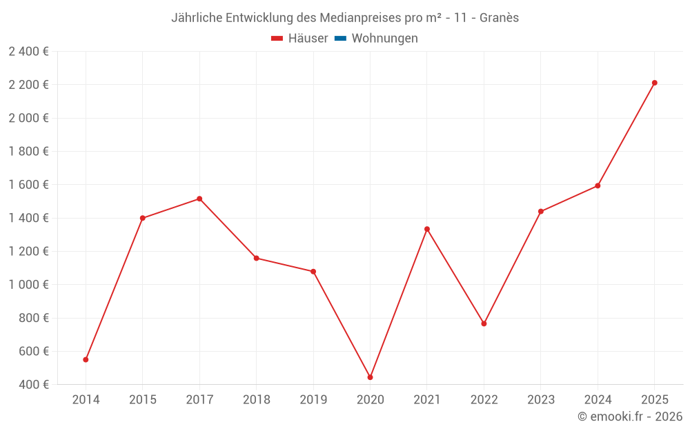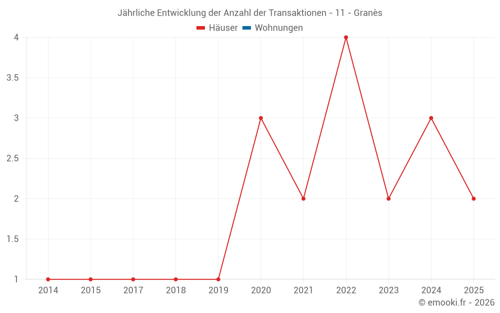 Karte der Immobilienpreise in der Gemeinde Granès, wählen Sie einen Abschnitt, um Transaktionen nach Parzelle zu sehen.