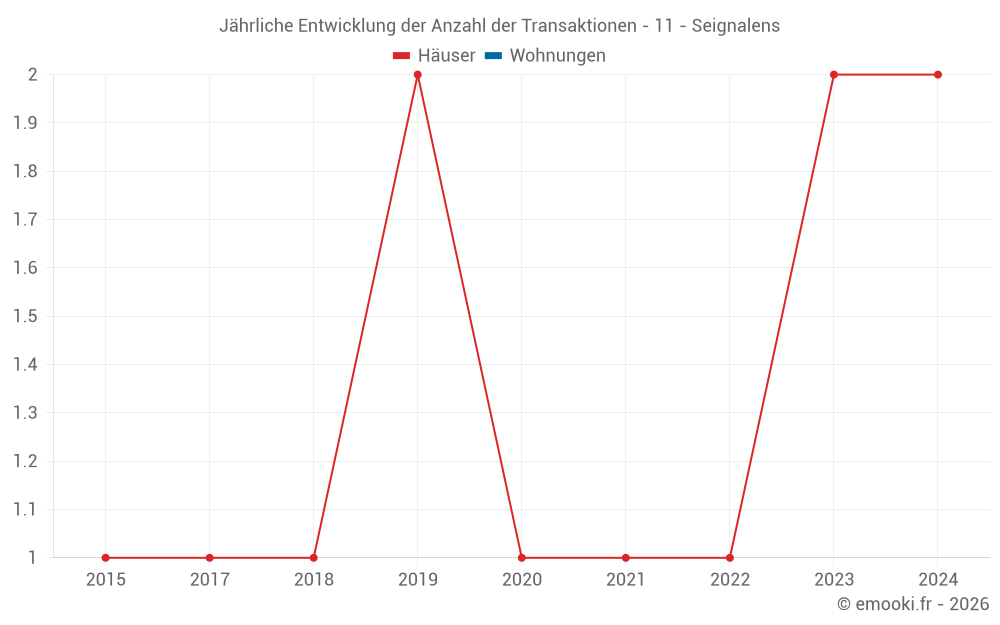 Karte der Immobilienpreise in der Gemeinde Seignalens, wählen Sie einen Abschnitt, um Transaktionen nach Parzelle zu sehen.
