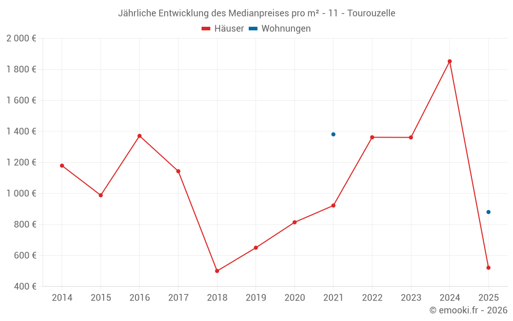 Was ist der Preis pro m2 für Häuser in Tourouzelle?
