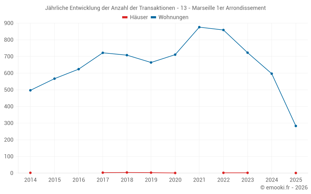 Der Durchschnittspreis auf den 117 Wohnungstransaktionen der letzten 3 Monate in der Gemeinde Marseille 1er Arrondissement betrug 2 821 € pro Quadratmeter für einen mittleren Immobilienwert von 144 000 €. Über diesen Zeitraum hinweg lagen 60% der Transaktionen zwischen 1 784 und 3 842 € pro Quadratmeter (vom 2. bis zum 8. Dezil).