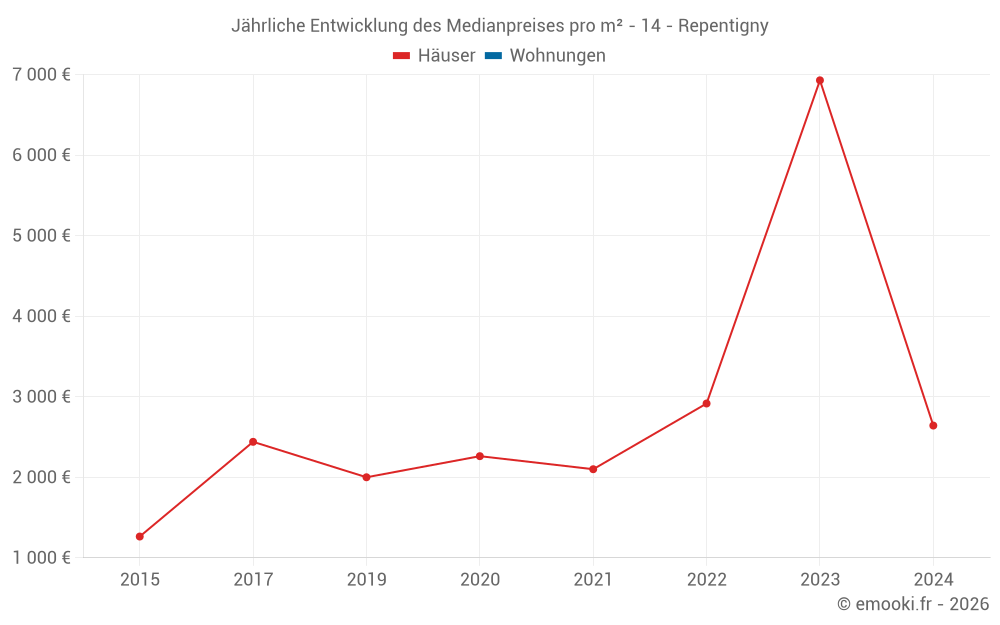 Entwicklung des Medianpreises pro m² von Häusern