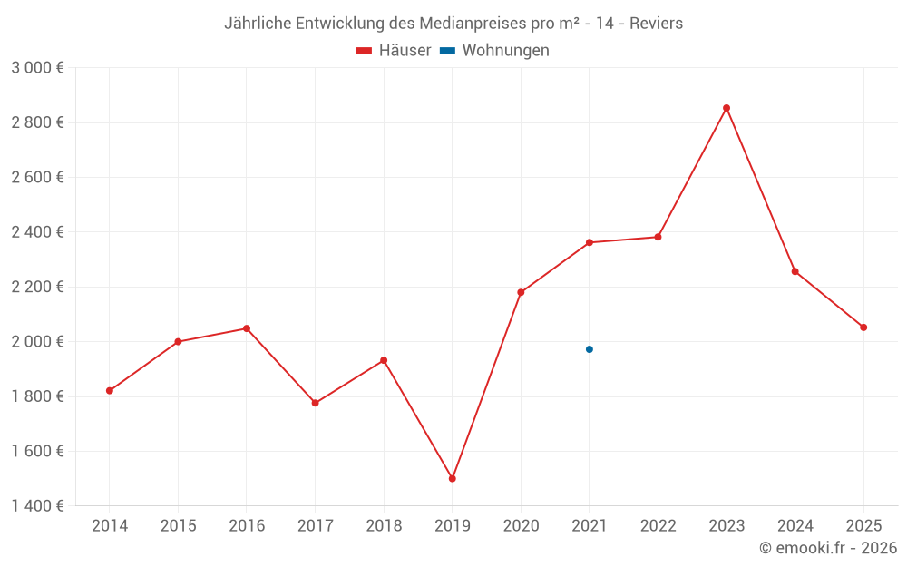 Entwicklung des Medianpreises pro m² von Häusern