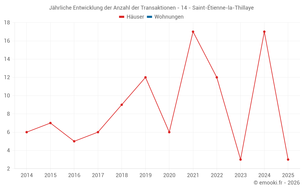 Der Durchschnittspreis auf den 23 Hausgeschäften der letzten 24 Monate in der Gemeinde Saint-Étienne-la-Thillaye betrug 3 552 € pro Quadratmeter für einen mittleren Immobilienwert von 400 000 €. Über diesen Zeitraum hinweg lagen 60% der Transaktionen zwischen 2 487 und 5 134 € pro Quadratmeter (vom 2. bis zum 8. Dezil).