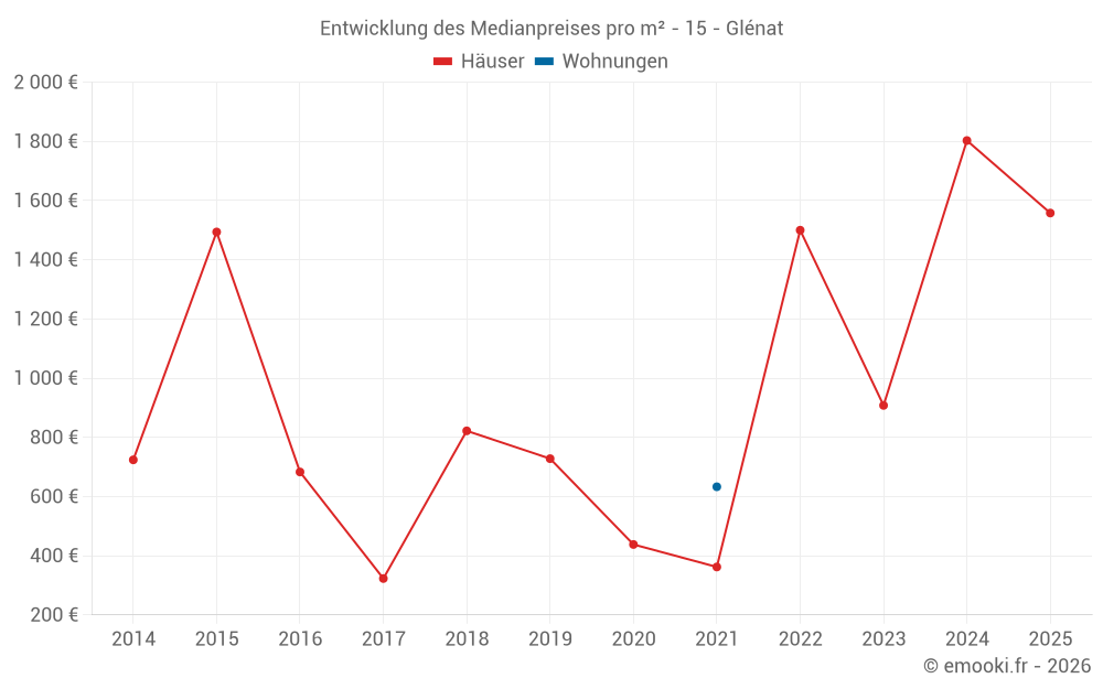 Karte der Immobilienpreise in der Gemeinde Glénat, wählen Sie einen Abschnitt, um Transaktionen nach Parzelle zu sehen.