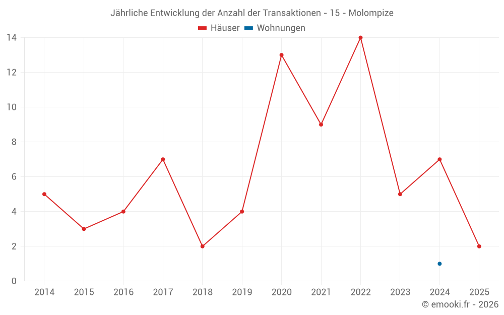 Karte der Immobilienpreise in der Gemeinde Molompize, wählen Sie einen Abschnitt, um Transaktionen nach Parzelle zu sehen.