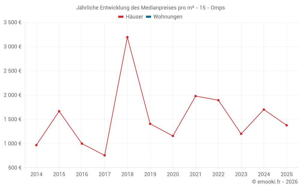 Karte der Immobilienpreise in der Gemeinde Omps, wählen Sie einen Abschnitt, um Transaktionen nach Parzelle zu sehen.