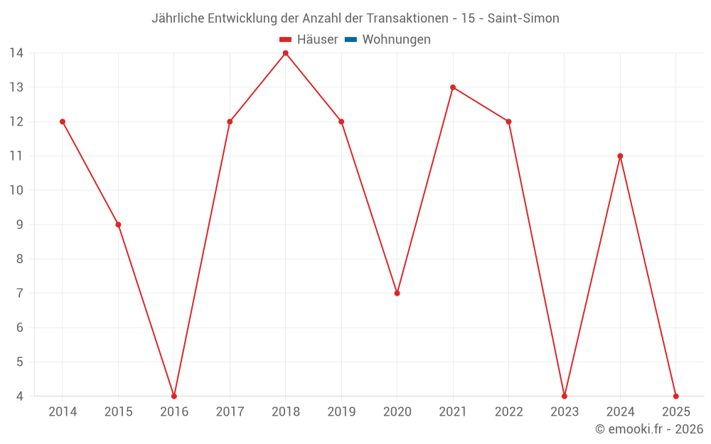 Der Durchschnittspreis auf den 18 Hausgeschäften der letzten 24 Monate in der Gemeinde Saint-Simon betrug 1 506 € pro Quadratmeter für einen mittleren Immobilienwert von 154 750 €. Über diesen Zeitraum hinweg lagen 60% der Transaktionen zwischen 1 212 und 2 479 € pro Quadratmeter (vom 2. bis zum 8. Dezil).