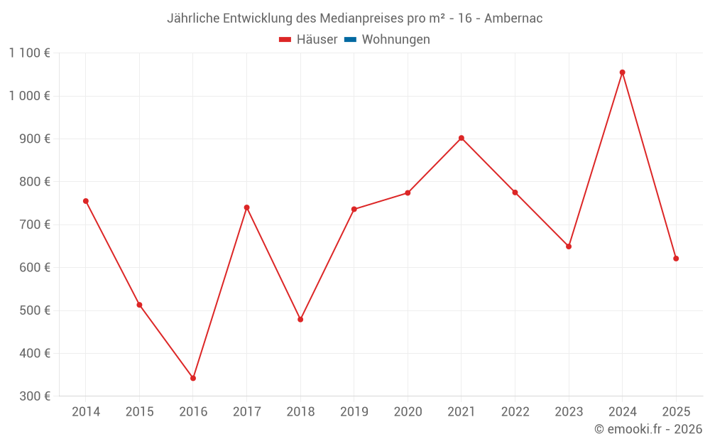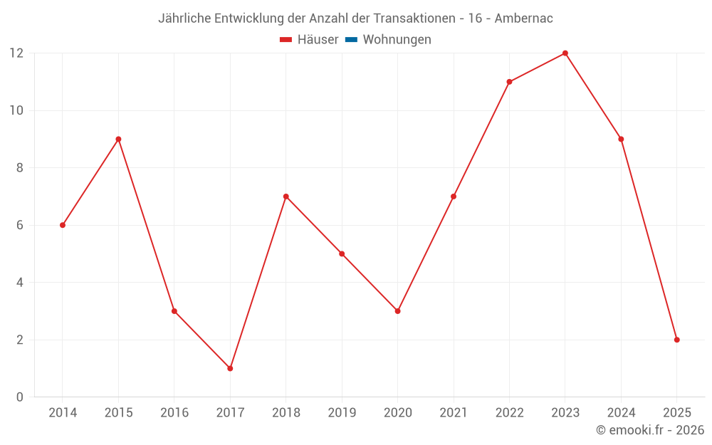 Der Durchschnittspreis auf den 17 Hausgeschäften der letzten 24 Monate in der Gemeinde Ambernac betrug 645 € pro Quadratmeter für einen mittleren Immobilienwert von 50 054 €. Über diesen Zeitraum hinweg lagen 60% der Transaktionen zwischen 431 und 1 440 € pro Quadratmeter (vom 2. bis zum 8. Dezil).