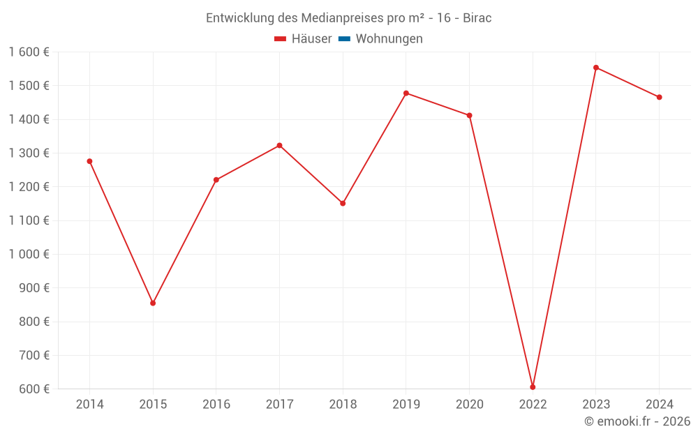 Karte der Immobilienpreise in der Gemeinde Birac, wählen Sie einen Abschnitt, um Transaktionen nach Parzelle zu sehen.