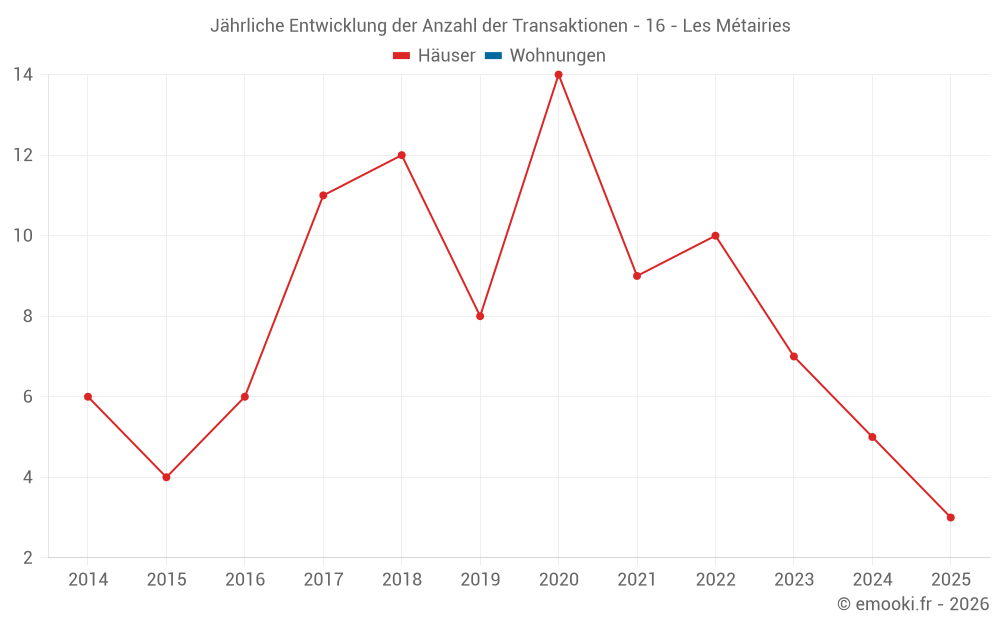 Der Durchschnittspreis auf den 14 Hausgeschäften der letzten 24 Monate in der Gemeinde Les Métairies betrug 1 943 € pro Quadratmeter für einen mittleren Immobilienwert von 204 600 €. Über diesen Zeitraum hinweg lagen 60% der Transaktionen zwischen 1 490 und 2 352 € pro Quadratmeter (vom 2. bis zum 8. Dezil).