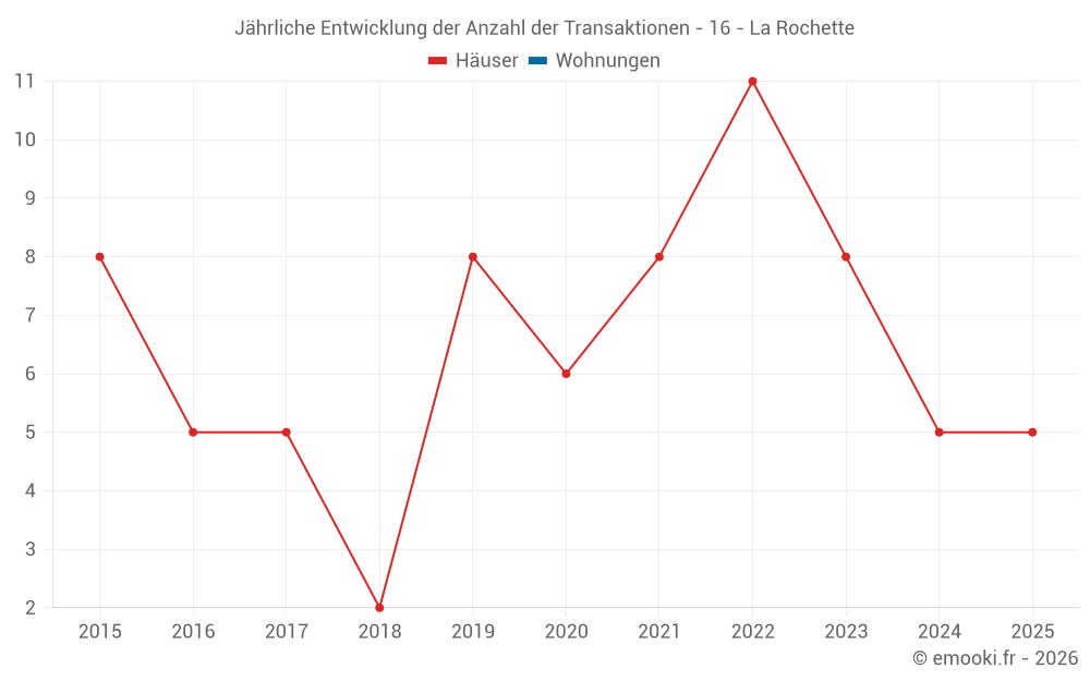Der Preis pro m² von Häusern ist seit 5 Jahren um 19% gesunken, aber er ist in 10 Jahren um 44% gestiegen.