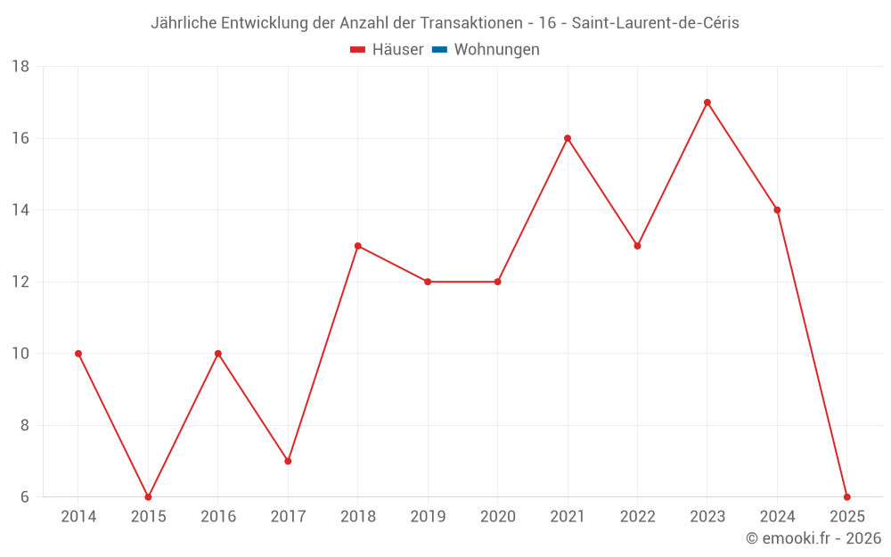 Der Durchschnittspreis auf den 30 Hausgeschäften der letzten 24 Monate in der Gemeinde Saint-Laurent-de-Céris betrug 684 € pro Quadratmeter für einen mittleren Immobilienwert von 60 750 €. Über diesen Zeitraum hinweg lagen 60% der Transaktionen zwischen 239 und 1 149 € pro Quadratmeter (vom 2. bis zum 8. Dezil).
