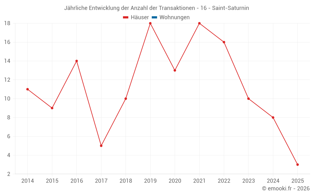 Der Durchschnittspreis auf den 14 Hausgeschäften der letzten 24 Monate in der Gemeinde Saint-Saturnin betrug 1 649 € pro Quadratmeter für einen mittleren Immobilienwert von 186 850 €. Über diesen Zeitraum hinweg lagen 60% der Transaktionen zwischen 1 247 und 2 127 € pro Quadratmeter (vom 2. bis zum 8. Dezil).