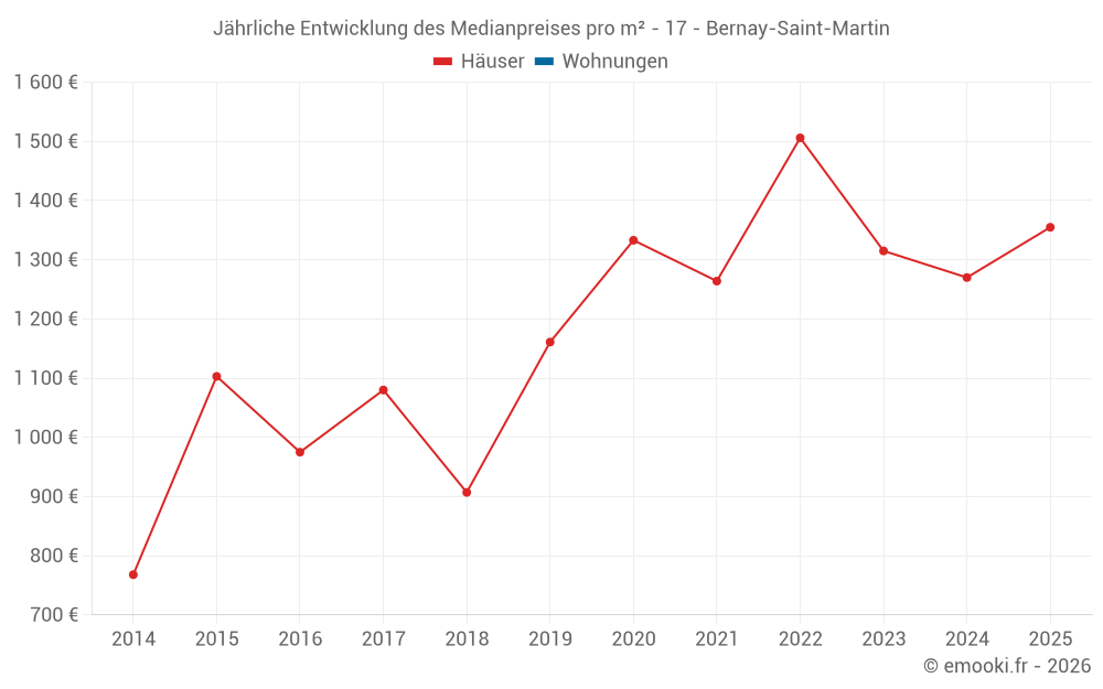 Entwicklung des Medianpreises pro m² von Häusern
