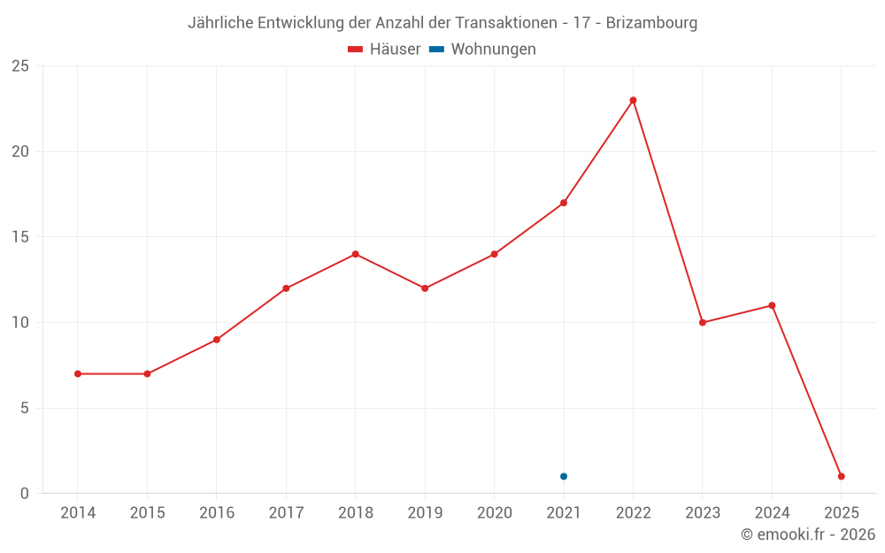 Der Durchschnittspreis auf den 16 Hausgeschäften der letzten 24 Monate in der Gemeinde Brizambourg betrug 1 332 € pro Quadratmeter für einen mittleren Immobilienwert von 117 000 €. Über diesen Zeitraum hinweg lagen 60% der Transaktionen zwischen 763 und 1 703 € pro Quadratmeter (vom 2. bis zum 8. Dezil).