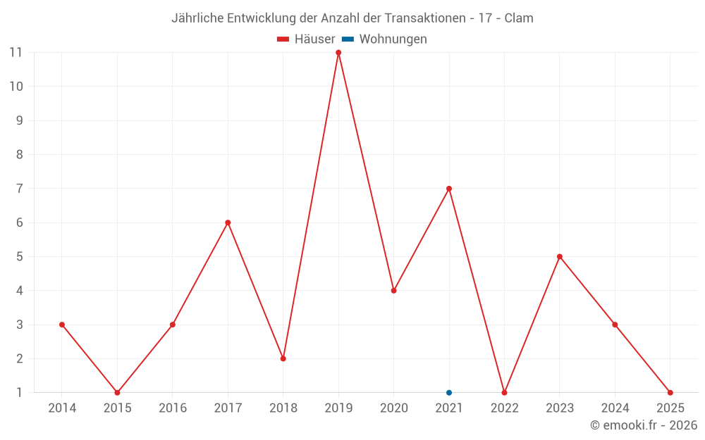 Karte der Immobilienpreise in der Gemeinde Clam, wählen Sie einen Abschnitt, um Transaktionen nach Parzelle zu sehen.