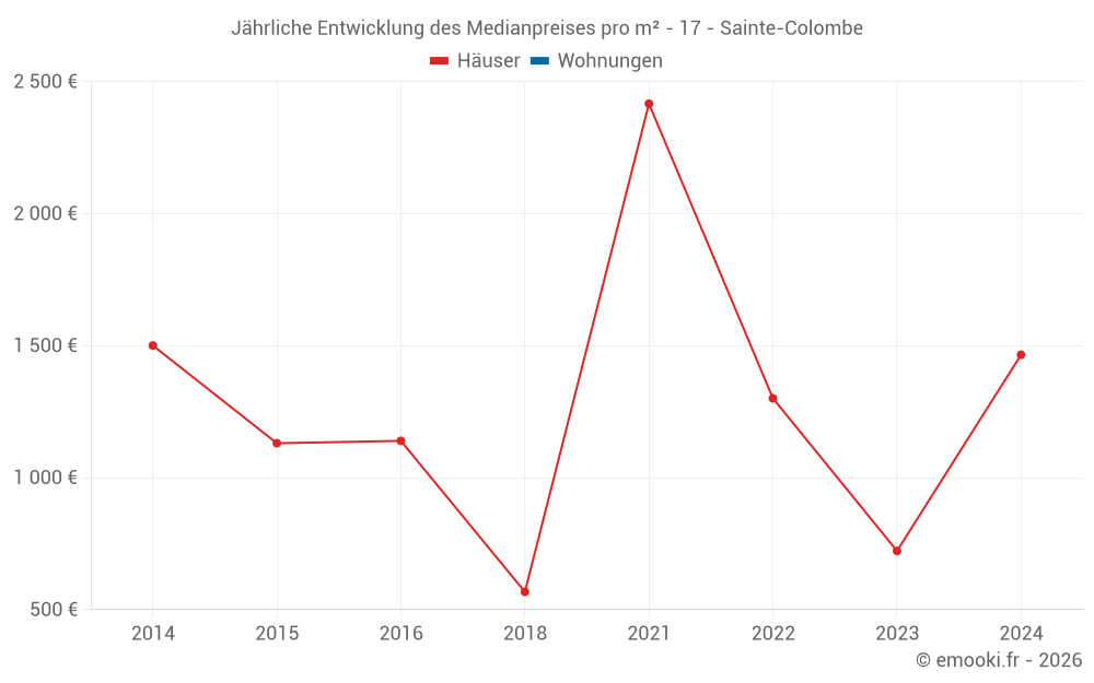 Entwicklung des Medianpreises pro m² von Häusern