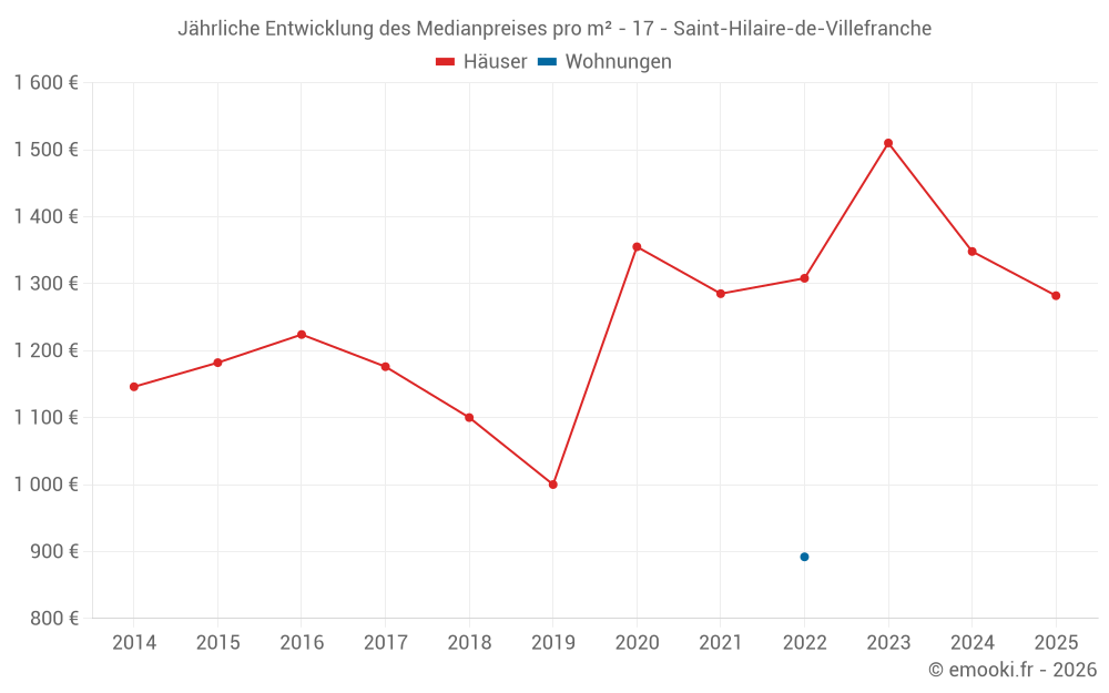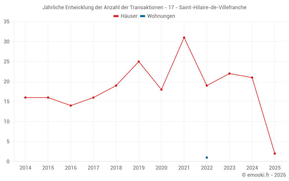 Der Durchschnittspreis auf den 17 Hausgeschäften der letzten 12 Monate in der Gemeinde Saint-Hilaire-de-Villefranche betrug 1 400 € pro Quadratmeter für einen mittleren Immobilienwert von 140 000 €. Über diesen Zeitraum hinweg lagen 60% der Transaktionen zwischen 911 und 1 921 € pro Quadratmeter (vom 2. bis zum 8. Dezil).