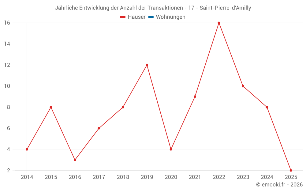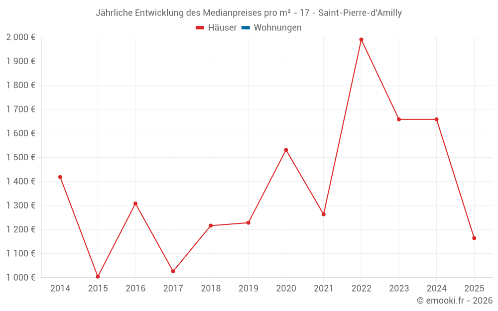 Der Durchschnittspreis auf den 15 Hausgeschäften der letzten 24 Monate in der Gemeinde Saint-Pierre-d'Amilly betrug 1 837 € pro Quadratmeter für einen mittleren Immobilienwert von 166 000 €. Über diesen Zeitraum hinweg lagen 60% der Transaktionen zwischen 979 und 2 437 € pro Quadratmeter (vom 2. bis zum 8. Dezil).