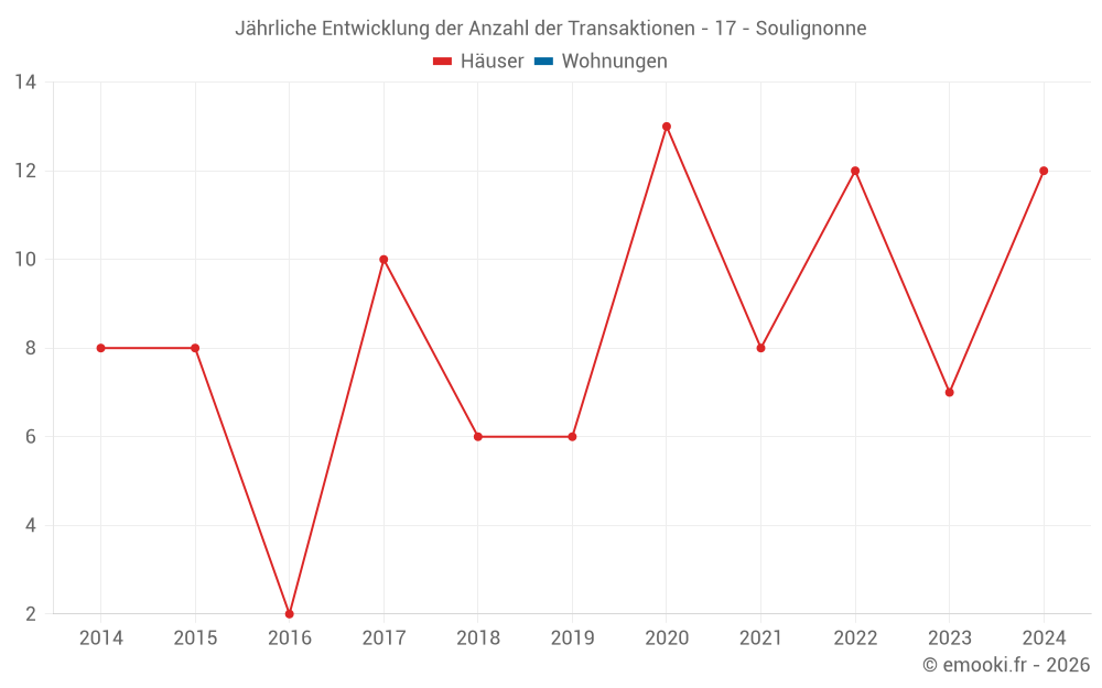 Der Durchschnittspreis auf den 16 Hausgeschäften der letzten 24 Monate in der Gemeinde Soulignonne betrug 1 948 € pro Quadratmeter für einen mittleren Immobilienwert von 153 500 €. Über diesen Zeitraum hinweg lagen 60% der Transaktionen zwischen 1 176 und 2 093 € pro Quadratmeter (vom 2. bis zum 8. Dezil).